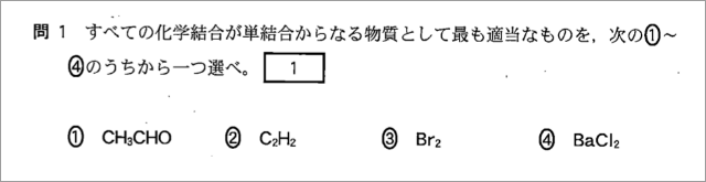 ④は『金属元素(Ba)と非金属元素(Cl)からできているものはイオン結合』という基本事項から間違いと分かります。