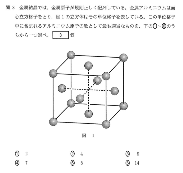 続いて問3です。こちらも結晶格子の基本事項を覚えていれば簡単に解けます。