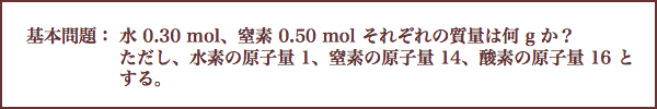 モル [mol] = 質量 [g] ÷ 分子量(原子量)・・・『モルは分子量ぶんの質量』と唱え続けて覚えます